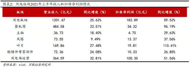 According to the Wanlian Securities Research Report, taking 26 wind power sector stocks as a sample, the wind power sector achieved operating income of 120.167 billion yuan in the first half of 2021, a year-on-year increase of 26%, and realized net profit attributable to the parent company of 18.289 billion yuan, a year-on-year increase of 60%.