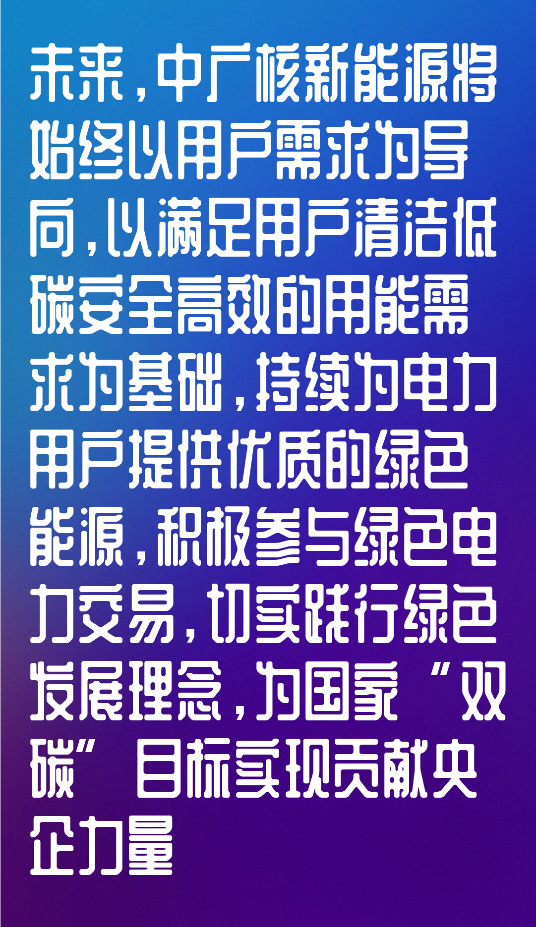 作为肩负社会责任的中央企业,中广核新能源始终走在绿色低碳发展的道路上。未来,中广核新能源将始终以用户需求为导向,以满足用户清洁低碳安全高效的用能需求为基础,持续为电力用户提供优质的绿色能源,积极参与绿色电力交易,切实践行绿色发展理念,为国家“双碳”目标实现贡献央企力量!(转载请注明见道网 www.seetao.com )见道网工程栏目编辑/邢文涛