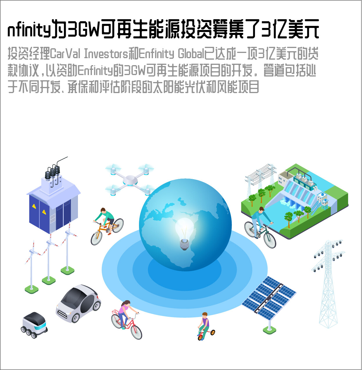投资经理CarVal Investors和Enfinity Global已达成一项3亿美元的贷款协议,以资助Enfinity的3GW可再生能源项目的开发。管道包括处于不同开发、承保和评估阶段的太阳能光伏和风能项目。