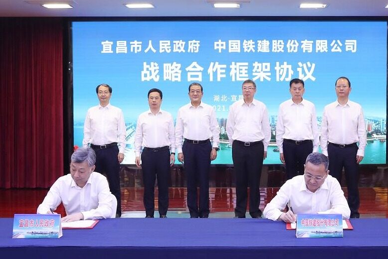 2021年9月14日上午,中国铁建总裁、党委副书记庄尚标在宜昌会见宜昌市委书记王立,市委副书记、市长马泽江,并共同见证中国铁建与宜昌市人民政府签订战略合作框架协议。中国铁建党委常委、副总裁倪真与宜昌市政府党组成员李向东分别代表双方签署协议。