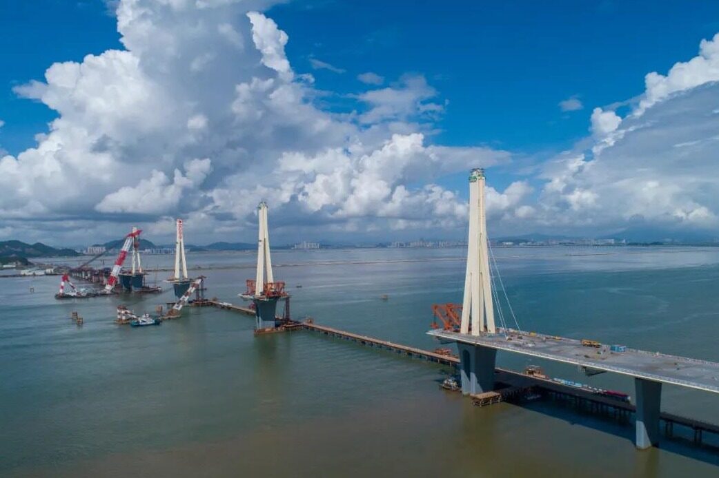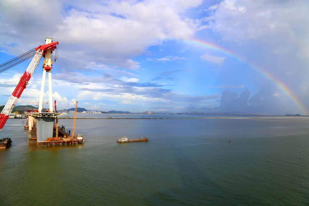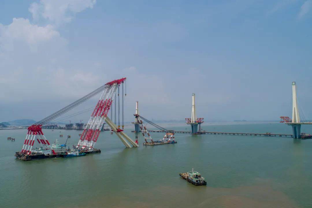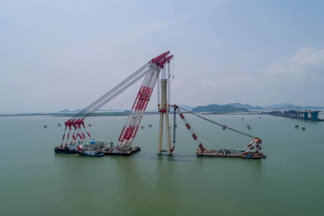 2021年9月14日7时28分,随着“大桥海鸥”号起重船缓慢松钩高106.8米、重2800吨的钢塔精确就位,至此,由广东广珠城际公司投资建设中铁大桥局承建的世界首座公铁同层多塔斜拉桥——珠海珠机城际金海大桥四座钢主塔全部架设完成,标志着大桥2000吨以上级别的12次吊装圆满结束,为大桥建成通车打下了坚实基础。