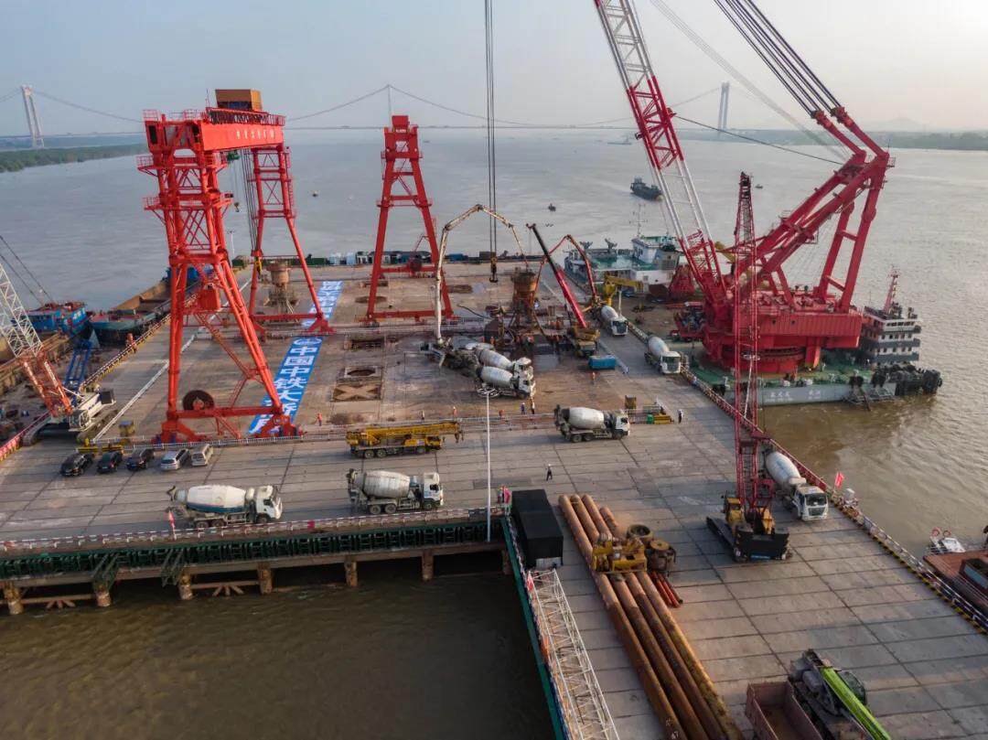 与大桥跨度相匹配的,还有超大规模、超高塔、超大直径钻孔桩等组合体,大桥建成后将创下多项世界之最。