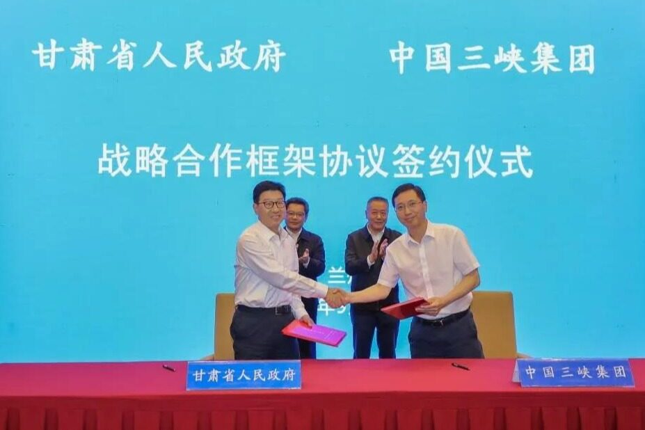 2021年9月14日,三峡集团党组书记、董事长雷鸣山在甘肃省兰州市与甘肃省委副书记、省长任振鹤座谈,双方就贯彻落实习近平总书记对甘肃重要讲话指示精神,进一步深化新能源开发、乡村振兴等方面合作进行深入交流。座谈后,任振鹤、雷鸣山共同见证,甘肃省副省长张锦刚和三峡集团党组成员、总会计师曾义分别代表双方签署《甘肃省人民政府 中国长江三峡集团有限公司战略合作框架协议》;武威市委副书记、代市长王国斌和三峡能源党委书记、董事长王武斌分别代表双方签署《武威市人民政府 中国三峡新能源(集团)股份有限公司合作框架协议》。