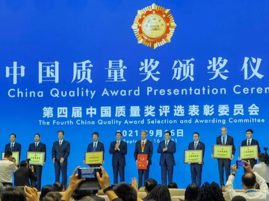 中国质量(杭州)大会当日在浙江省杭州市开幕,主题为“质量数字绿色融合”,由国家市场监督管理总局、浙江省人民政府和杭州市人民政府共同举办。会上,国务委员王勇、国家市场监督管理总局局长张工、浙江省委书记袁家军共同向第四届中国质量奖获奖组织和个人代表颁奖,中国中铁工业旗下中铁装备集团与京东方、美的等组织和个人获得中国质量领域最高奖——中国质量奖,这也是中国隧道掘进机行业首家获得此奖项的企业。
