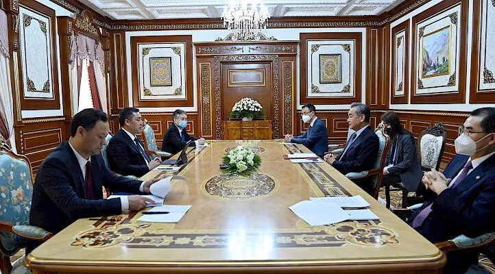 中吉历久弥新、历久弥坚。2021年9月16日,吉尔吉斯斯坦总统扎帕罗夫在杜尚别会见中国国务委员兼外长王毅。