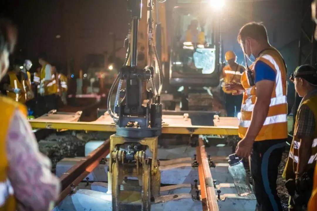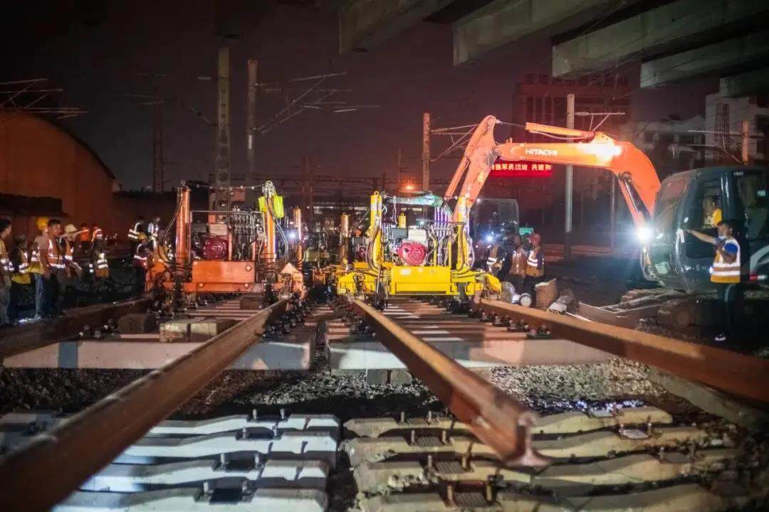 当日凌晨,近千名铁路职工协同配合,对柳州站18号道岔进行更换,这是广西首次在高铁站内进行道岔更换施工。
