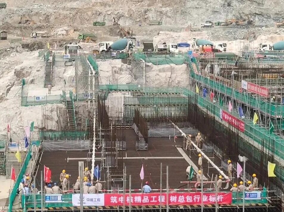2021年9月19日,中核集团田湾核电7号机组常规岛汽轮发电机厂房筏基底板浇筑第一罐混凝土,比计划提前1个月实现常规岛正式开工,这标志着7号机组建设序幕全面拉开。