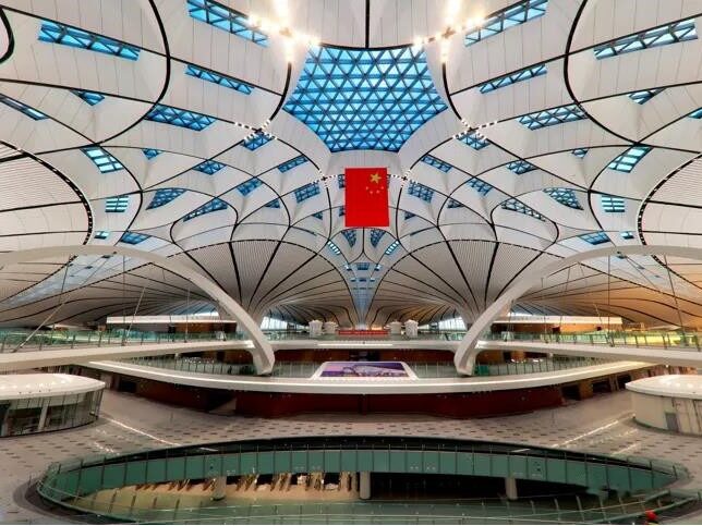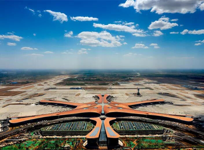 北京大兴国际机场位于北京中轴线最南,是首都的重大标志性工程、国家发展一个新的动力源,从高空俯瞰宛如金凤展翅,曾被英国《卫报》评为新世界七大奇迹之首。