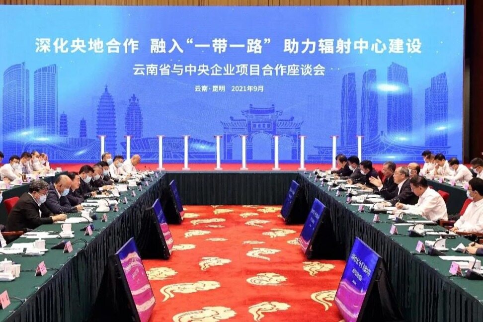 云南省与中央企业项目合作座谈会深入贯彻习近平总书记“七一”重要讲话和考察云南重要讲话精神,立足新发展阶段、贯彻新发展理念、构建新发展格局,着眼云南所需、发挥央企所长,推动央地合作进一步走深走实,共同实现高质量发展,充分发挥中央企业国民经济主力军、排头兵作用,积极融入云南经济社会发展,在助力云南高质量跨越式发展过程中,自身高质量发展也取得新成效。