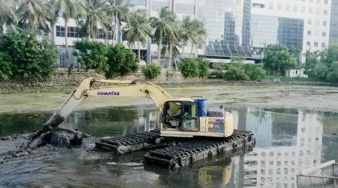 内源清理就是将全河段清淤,迅速将河道内沉淀长时间的污染物清除。内源清淤是见效最快的一种手段。但是清淤工程量巨大,仅鸭尾溪一条河就需要清除淤泥14.5万立方米。