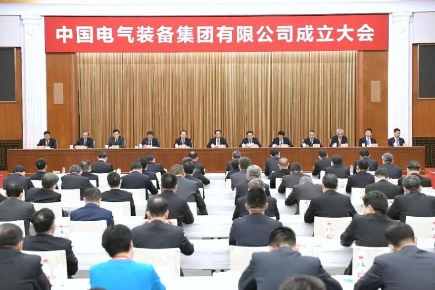 国务院国资委党委委员、副主任翁杰明主持会议,并宣读了关于中国电气装备集团有限公司重组的批复文件。国家电网有限公司党组书记、董事长辛保安,中国电气装备集团党委书记、董事长白忠泉作了发言。