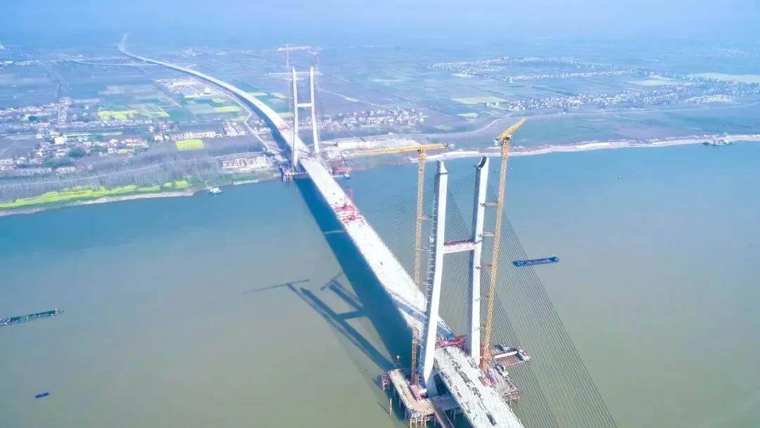 大桥自2018年3月开工建设以来,中铁大桥局建设者经历了特大洪水、高温和新冠肺炎疫情的叠加冲击。面对紧迫的施工期限,项目部一方面优化施工方案,另一方面通过争取更多作业时间点,抢抓被耽误的工期。2021年春节期间,响应国家“就地过年”号召,全桥300余名参建人员留守工地,为大桥建设发起冲刺,确保大桥按期通车。
