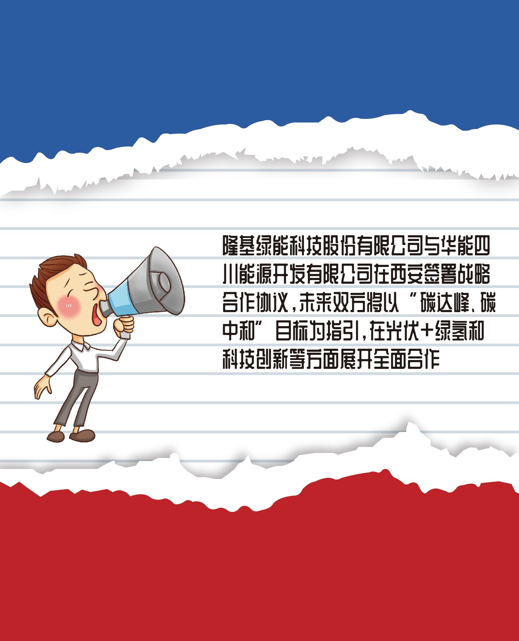 2021年9月28日,隆基绿能科技股份有限公司与华能四川能源开发有限公司在西安签署战略合作协议,未来双方将以“碳达峰、碳中和”目标为指引,在光伏+绿氢和科技创新等方面展开全面合作。