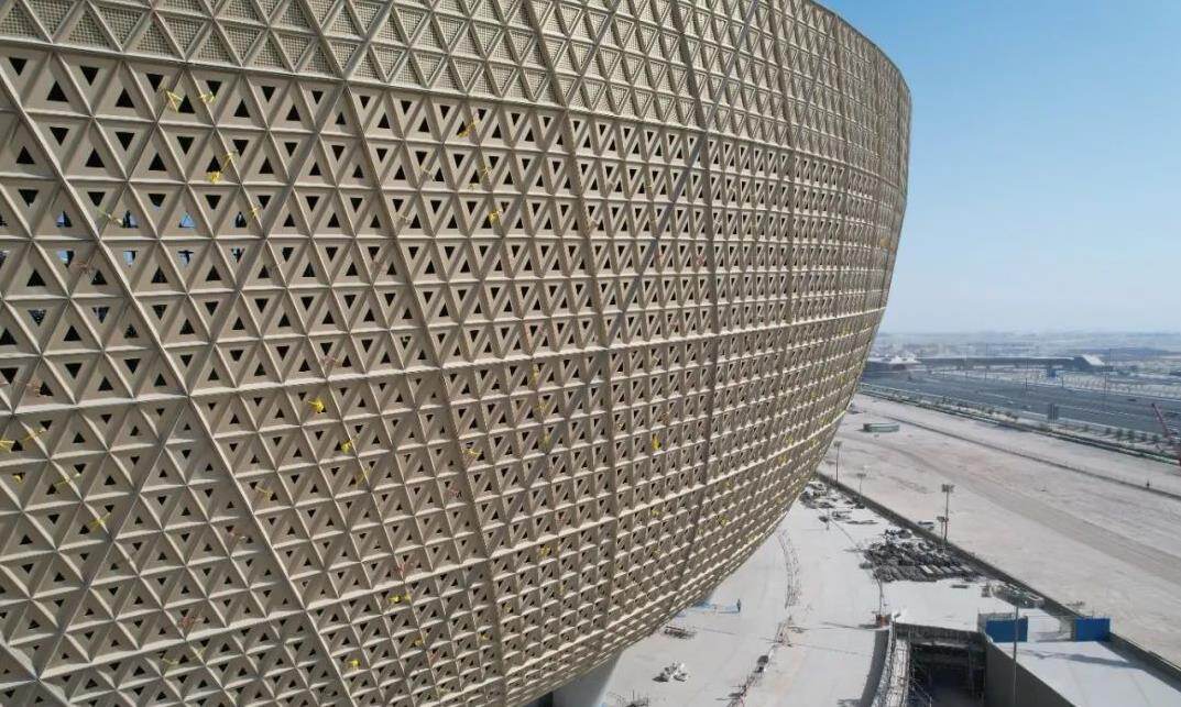 2021年9月30日,在卡塔尔多哈,中国铁建承建的2022年卡塔尔世界杯主体育场卢赛尔体育场最后一个单元的屋面膜结构安装就位,标志着中国企业首次承建的世界杯主场馆主体工程全部完工。