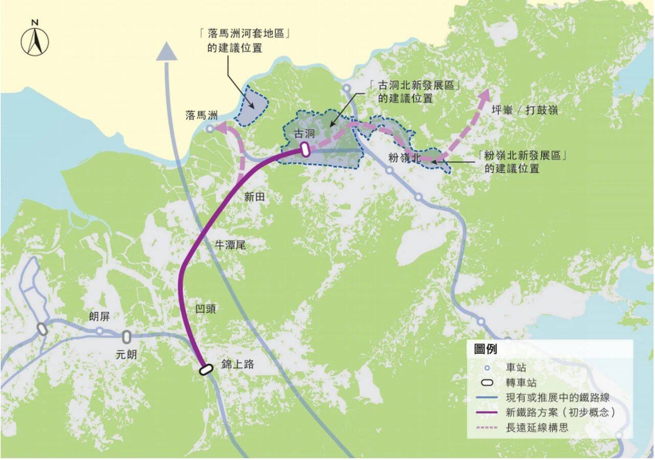 The integration and expansion of the northern metropolitan area will be driven by railways as the backbone of the transportation system. In order to realize the integration of Hong Kong and Shenzhen, the "policy address" proposed a series of major railway projects: the Hong Kong-Shenzhen Western Railway connecting Hung Shui Bridge/Xia Village to Qianhai in Shenzhen; and extending the planned northern loop line to the north through the Lok Ma Chau Loop The Hong Kong-Shenzhen Innovation and Technology Park (Hong Kong-Shenzhen Innovation and Technology Park) in the region (Loop area) is connected to the Xinhuanggang Port in Shenzhen; the extension of the East Rail Line to Shenzhen Luohu and the establishment of a two-site inspection port in Shenzhen will be discussed. A new railway station with non-transit railway services will be added between Lo Wu Station and Sheung Shui Station to release the development potential of Lo Wu/Man Kam To and Sheung Shui North; the northern loop line will be extended from Kwu Tung Station to the east to connect Lo Wu, Man Kam To and Heung Yuen Wai area, then south through Ta Kwu Ling, Queen's Hill to Fanling; explore the feasibility of constructing an automatic MRT system from Tsim Bei Tsui to Pak Nai to promote the development of the area and Lau Fau Shan.