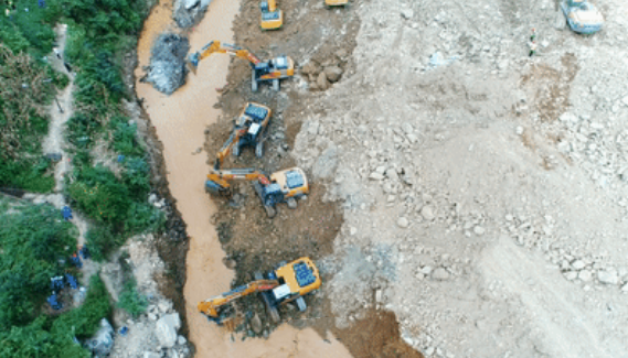 Since the disaster occurred on September 9, the rescue team and equipment dispatched by XCMG have been stationed at the aid site for 20 consecutive days, working around the clock to excavate the dam, release floods, and repair the surrounding mountains. As of press time, the diversion channel of the Dahekou dammed lake has been opened up, the water storage capacity has been declining, and the mountain restoration work has been basically completed.