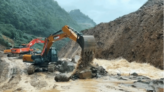 Since September, Zhenba County in Hanzhong has suffered continuous heavy rains, which caused extremely large landslides and interrupted the 210 National Highway. The situation is grim. A difficult one, P Plus support. XCMG heard the news immediately and deployed 10 40-ton XCMG excavators and 2 50-ton excavators to help the frontline.
