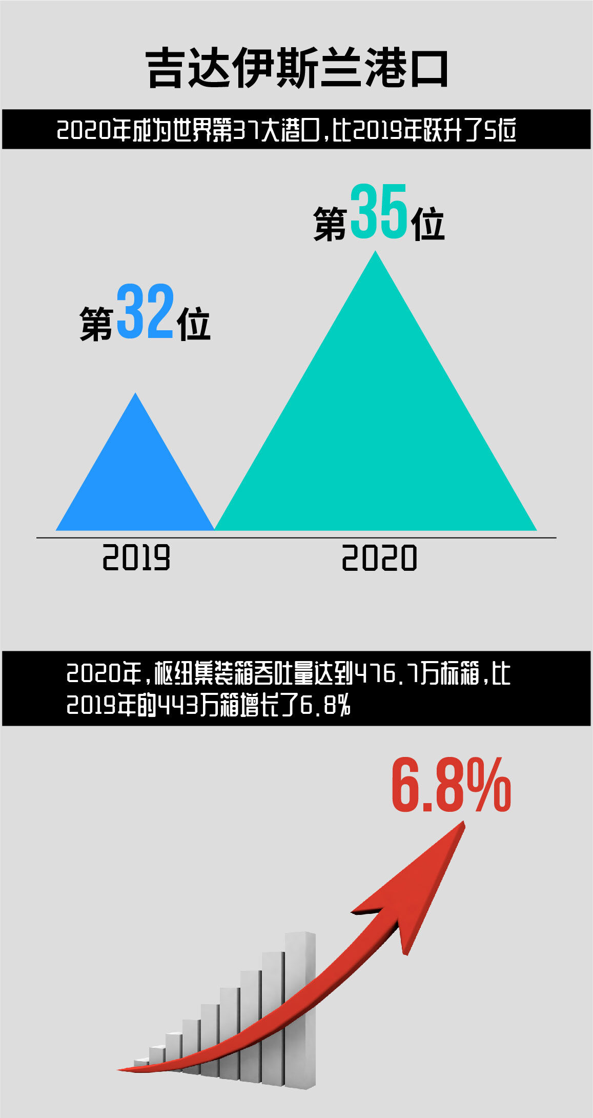 该项目将有助于将吉达转变为一个主要的国际贸易和物流中心。根据劳埃德银行的年度报告,吉达伊斯兰港口2020年成为世界第37大港口,比2019年跃升了5位。集装箱运输能力的上升推动了这一飞跃,2020年,枢纽集装箱吞吐量达到476.7万标箱,比2019年的443万箱增长了6.8%。
