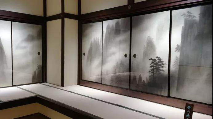 In the second part of the exhibition, Dongshan Kuiyi was invited to draw a 68-sided partition fan painting for Tang Zhaoti Temple Royal Shadow Hall. Higashiyama Kuiyi fan painting is a ten-year painstaking effort. It is a sliding door or wall of an indoor partition space in Japan. It is usually based on painting and is a traditional Japanese interior architectural art work. Since 1971, Higashiyama has created these historically separate fan paintings, studied the life of Jianzhen and the history of Tangzhaoti Temple, and visited Japan's famous mountain and seascapes. In May 1975, he completed "Mountain Clouds" and " Taosheng. He made three trips to natural attractions in China, absorbing the essence of Chinese and Japanese ancient painting art, and perfectly blending the emotions and scenery in his chest in the paintings. In February 1980, he completed "Yangzhou Smoked Wind", "Guilin Moonlight" and " "Huangshan Xiaoyun" was finally drawn into "Ruiguang" inside the seat.