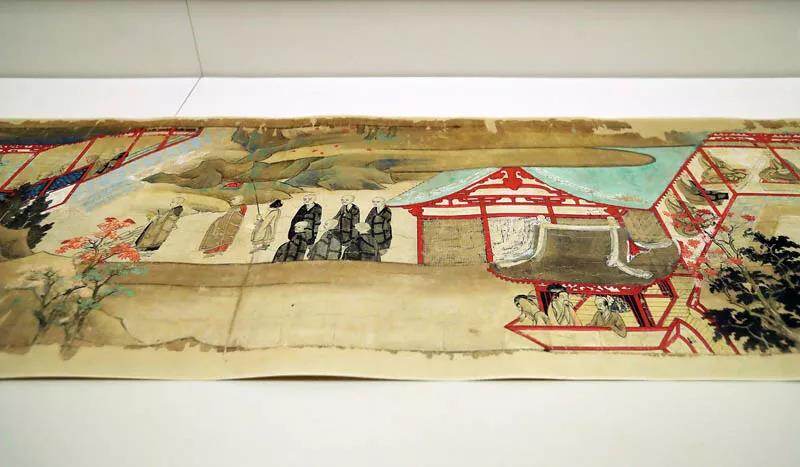 The "Eastern Encyclopedia Painting Volume" was painted in 1298 (sixth year of Yongin, the Kamakura period in Japan), and it depicts Jian Zhen's glorious life from the time he became a monk to the establishment of the Tangzhaoti Temple in East Japan. Most of the plots are based on "Tang Yamato's Upper East Conquest" written by the famous scholar Tamami Miyake from the Nara period in Japan. The picture is rich and exquisite, and the action and expression of the characters are vivid and interesting. This kind of picture scroll is similar to the later comic strips and comics. It has a preface and a picture description.