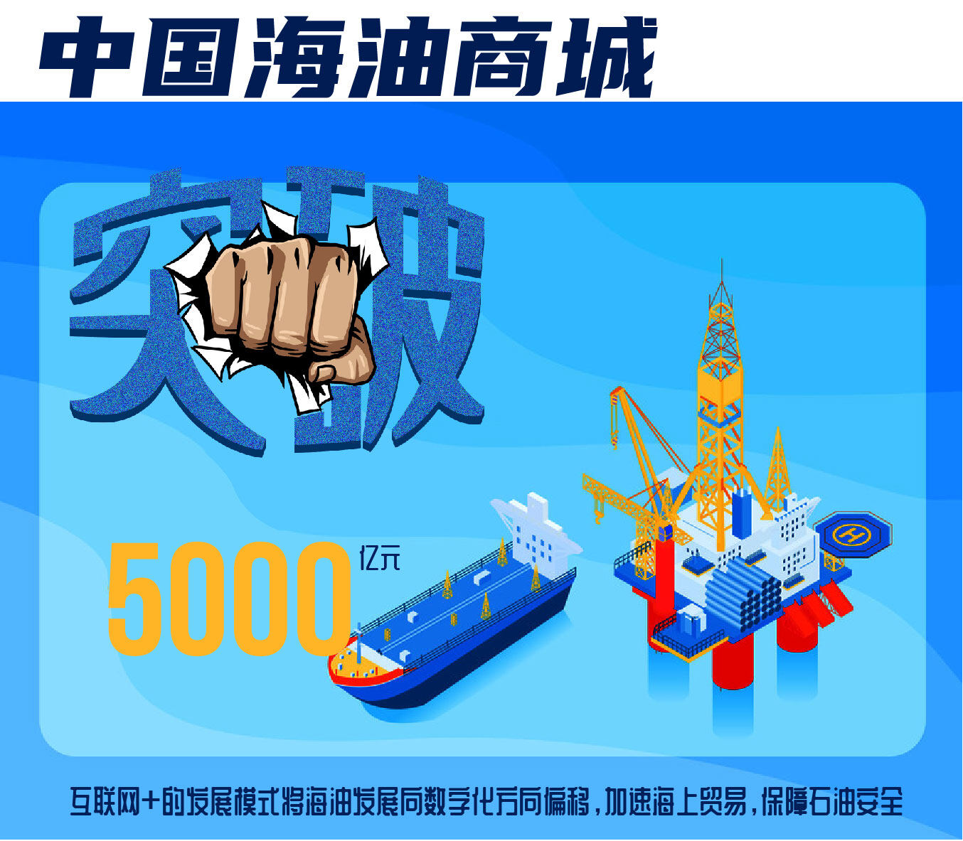 2021年10月11日,海油商城累计交易额突破5000亿元,2018年,按照国家“互联网+”总体部署和推动产业数字化的有关要求,中国海油大力实施创新驱动战略,以销售侧数字化转型为导向,开展了中国海油电商平台建设。2019年6月,在集团公司党组的坚强领导下,在科技信息部的全力推动下,中国海油统一的大宗物资电商交易平台——海油商城正式投入运营。