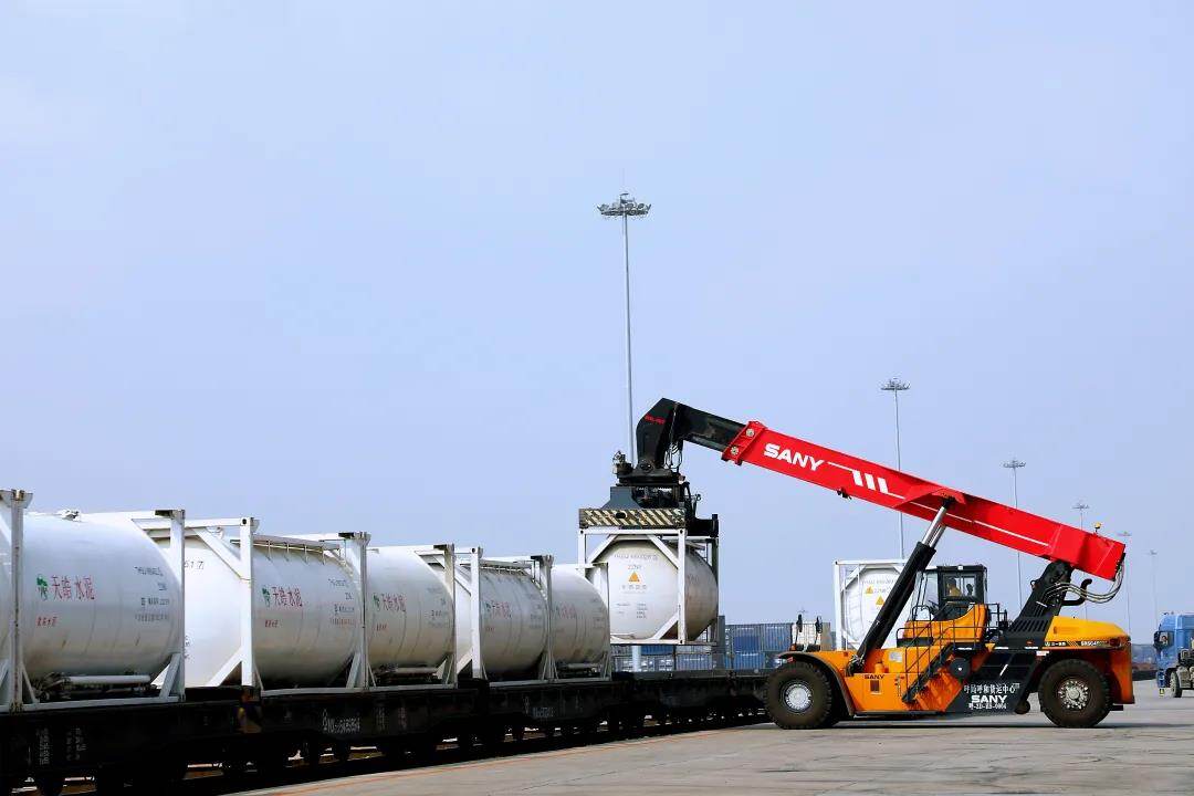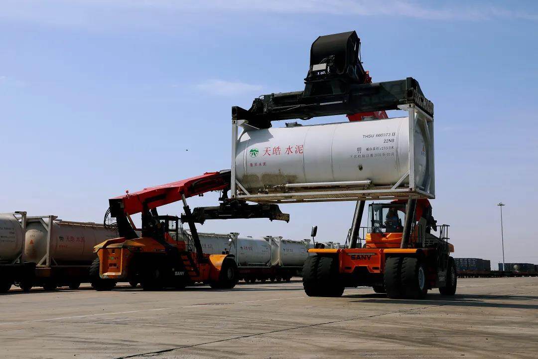 في 23 سبتمبر ، في منتزه شاليانغ لوجستيكس في مركز هوهوت للشحن ، تم نقل اثنين من رافعات التكديس ذهابًا وإيابًا ، ورفع حاويات الخزانات البيضاء وتحميلها على سيارات مسطحة خاصة. بعد أربع ساعات ، سينطلق قطار حاويات مليء بالأسمنت السائب إلى منطقة بكين - تيانجين - خبي على طول سكة حديد تانغباو للمساعدة في البناء المحلي.