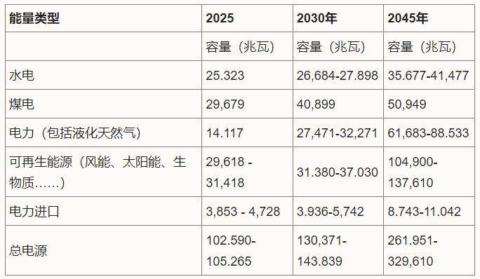 根据草案,2021-2030年期间,实施电力发展规划所需的总投资资金约为993.2-1159.6亿美元,折合每年10-115亿美元。其中,用于电源开发的平均资金为每年85.7-101.5亿美元;输电网的资金约为每年1.36-14.4亿美元。10年后,每年投资电源和电网所需的资金增加到12-152亿美元。