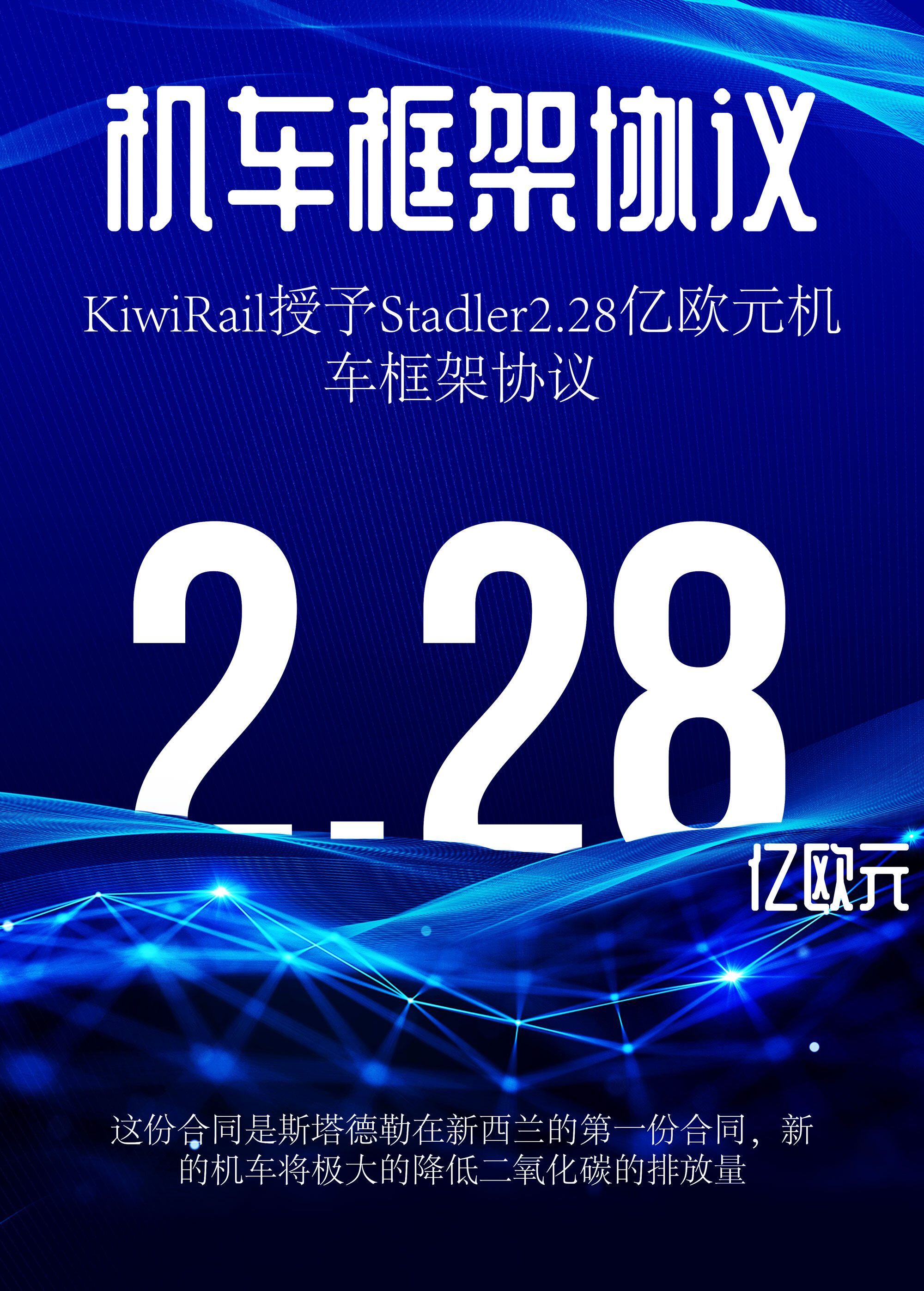 新西兰铁路KiwiRail已与Stadler签署协议,供应价值约2.28亿欧元的57台柴油干线机车。该订单是更广泛的框架协议的一部分,是这家瑞士制造商在新西兰的第一笔订单。