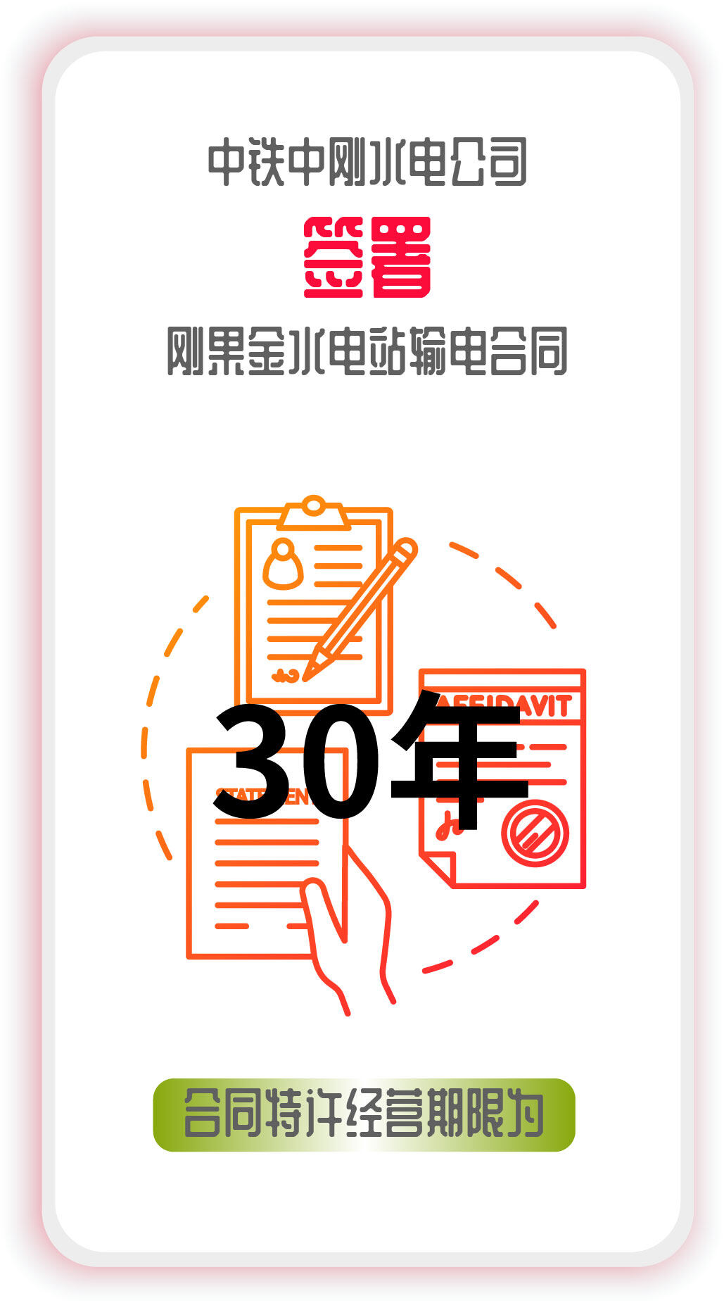 日前,刚果(金)水利能源与电力部与中铁资源集团中刚水电公司在金沙萨签署《布桑加水电站输电特许权合同》。这是刚果(金)政府自2014年电力法颁布实施以来签署的第一份输电特许权合同,该协议对实现绿色低碳社会,构建新能源网络具有重要的引领示范作用,为构建中非一带一路建设再添彩。
