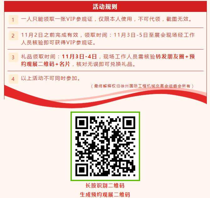 观展福利二:将此文连续转发朋友圈7天,附带文字:11月3日-5日,一起去参观2021徐州国际工程机械交易会。即可在活动区,获得礼品盲盒一份,限前500个/天。(转载请注明见道网www.seetao.com)见道网工程栏目编辑/邢文涛