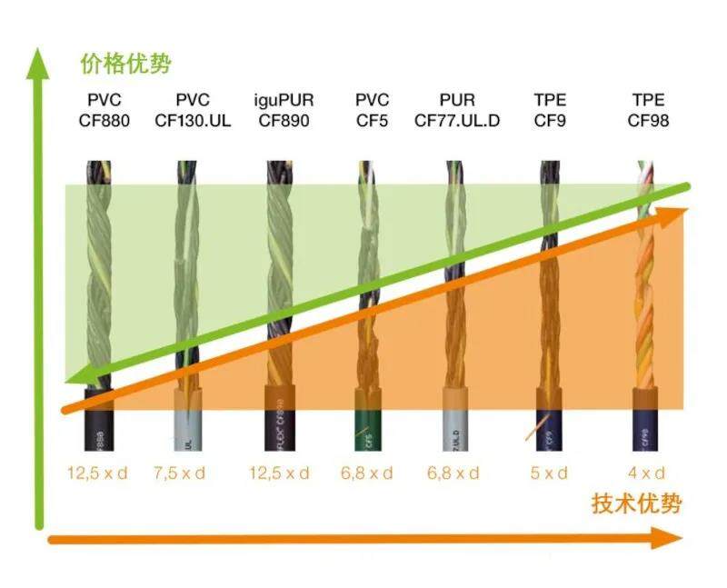 多种不同外护套,满足不同的使用要求,可以根据具体使用工况,选择不同的电缆方案,达到最高性价比。如经济款电缆CF880和CF885系列,拥有德国品质的同时,也不会有成本的困扰。