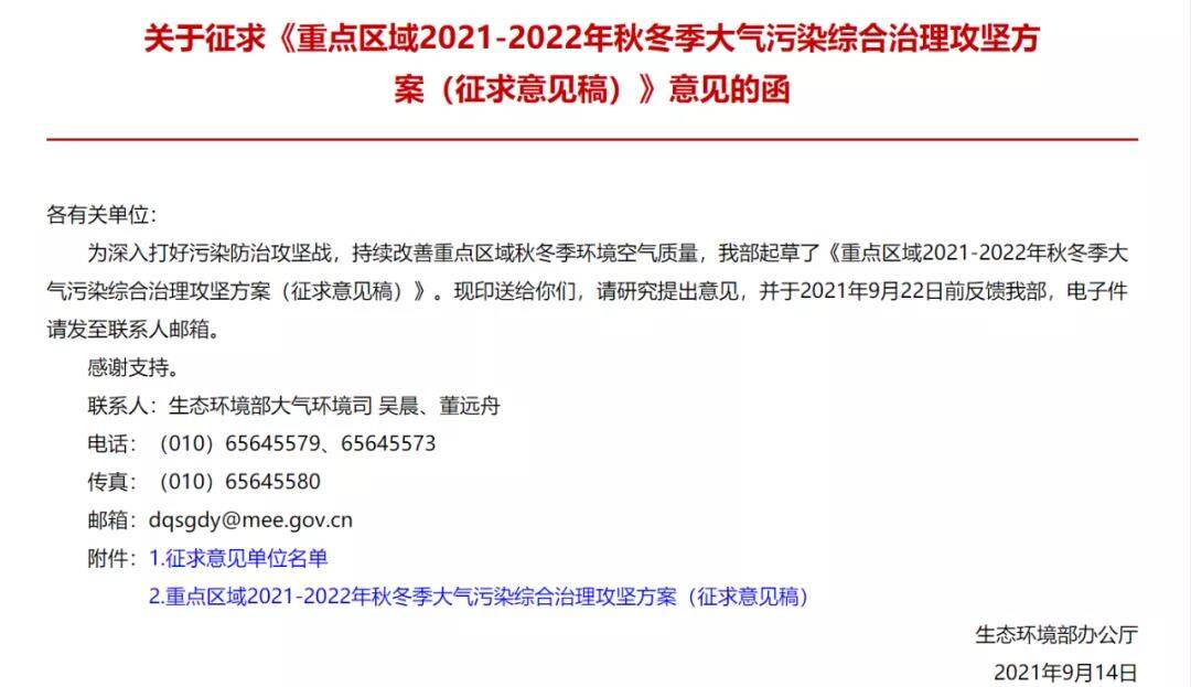近日,生态环境部发布《重点区域2021-2022秋冬季大气污染综合治理攻坚方案(征求意见稿)意见的函》。此次公布的是征集意见稿,相信正式稿即将正式发布。从这份征集意见稿的相关信息可以看出,此次停工令堪称是一个加强版的停工令,影响范围更大,治理行动涉及到的行业也多。