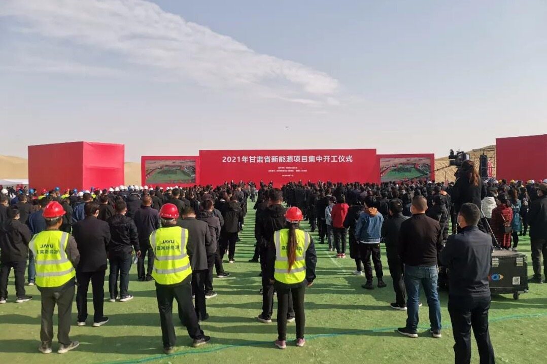 On October 15, 2021, at the start-up ceremony of the new energy projects in Gansu Province in Liangzhou District, Wuwei City, the 200,000-kilowatt photovoltaic desert control project in Minqin County invested and constructed by the Gansu Energy Company under the Power Construction Group started. Ren Zhenhe, deputy secretary of the Gansu Provincial Party Committee and governor, attended and announced the start of construction. Zhou Jianping, chief engineer of Power Construction Corporation, was invited to attend the groundbreaking ceremony and visited the project site. Yang Xiaoqiang, general manager of the company and deputy secretary of the party committee, attended the ceremony and accompanied the investigation.