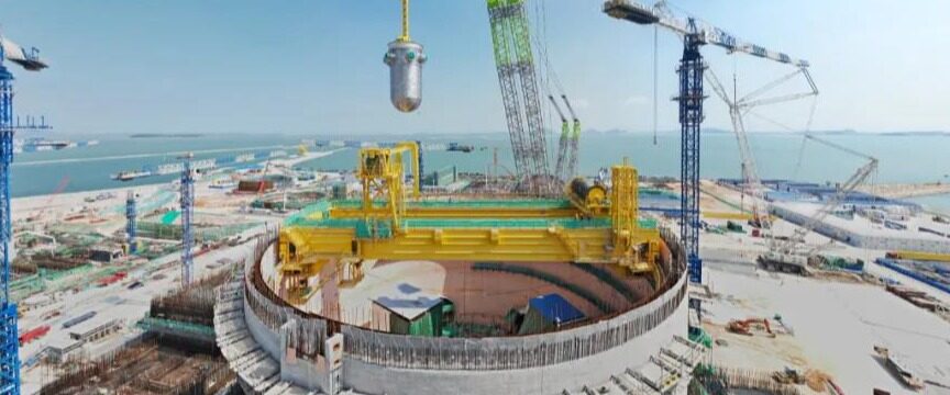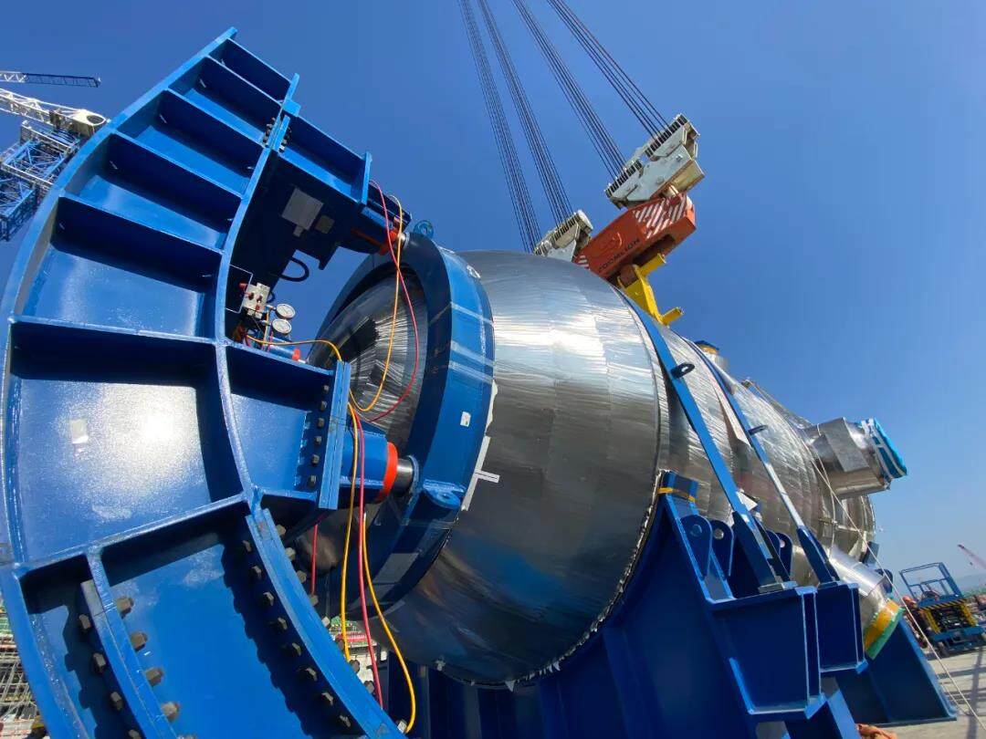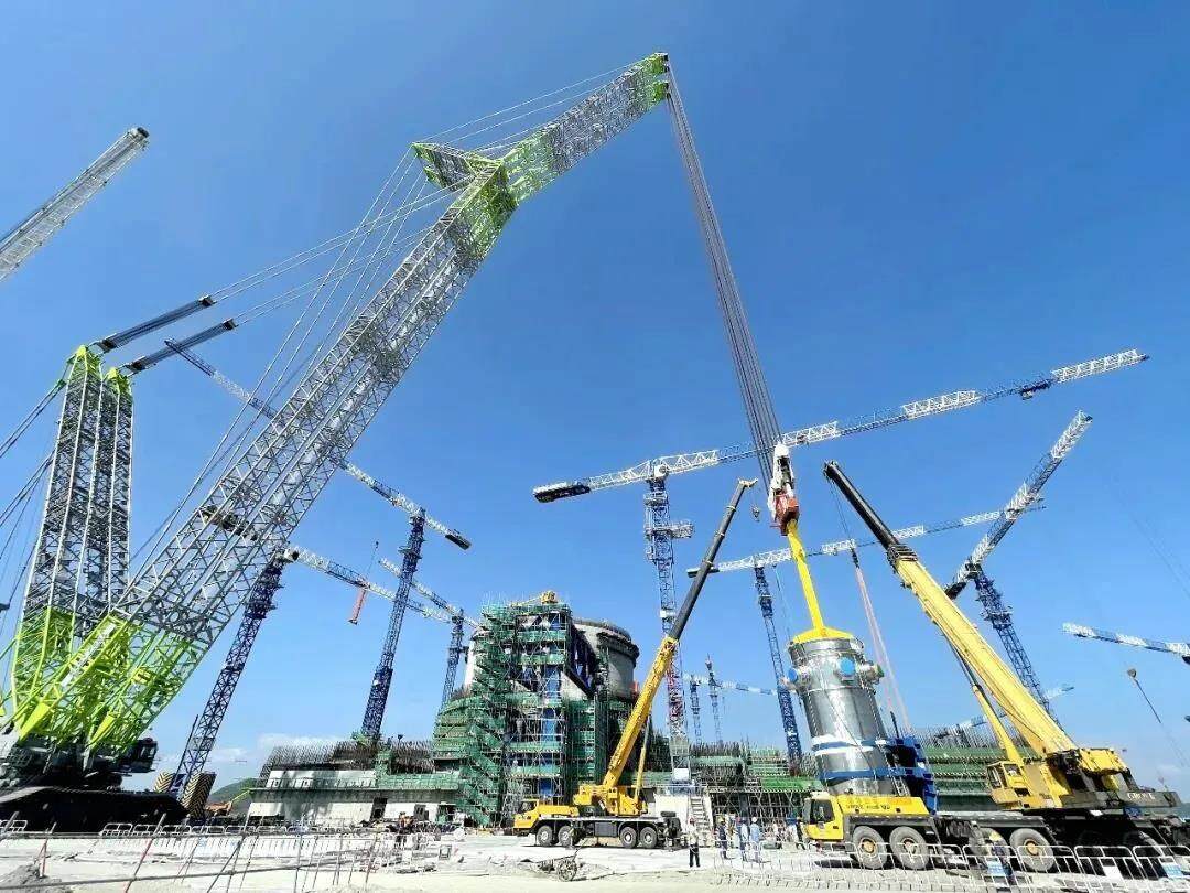 At 17:06 on October 19th, after 9 hours of operation, the Hualong No. 1 Zhangzhou Nuclear Power Unit No. 1 reactor pressure vessel, which was first introduced for construction by the open-top method in China, was successfully introduced into place and successfully hoisted, and the nuclear power unit reactor was launched. The introduction of the optimal working speed for pressure vessels creates a prerequisite for subsequent dome hoisting and main pipeline welding.
