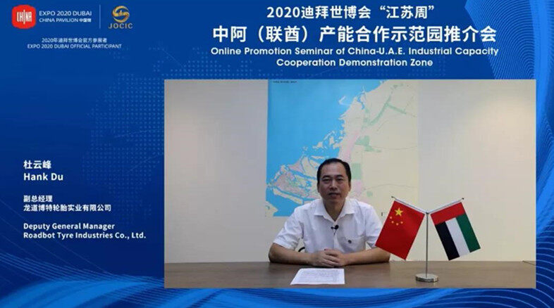 会议邀请阿布扎比投资办公室、哈利法工业区、江苏省跨国技术转移中心相关负责人就阿布扎比投资政策、园区合作情况、科技创新合作机遇做主旨发言。江苏海投公司总经理邹勇刚对中阿示范园背景情况、投资优势、进展情况等进行详细介绍,并与参会嘉宾共同观看中阿示范园最新进展视频。随后,入园企业龙道博特科技(江苏)有限公司、环球石油设备化工有限公司在线分享了在阿投资感受及入园体会,各参会嘉宾、企业线上参与积极讨论。