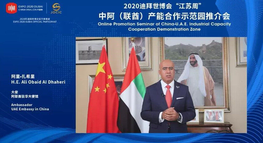 阿联酋驻华大使阿里·扎希里在致辞中指出,自中国与阿联酋建交以来,双方经贸关系日益密切,期待两国以中阿产能合作示范园为成功典范,打造更多合作示范项目。