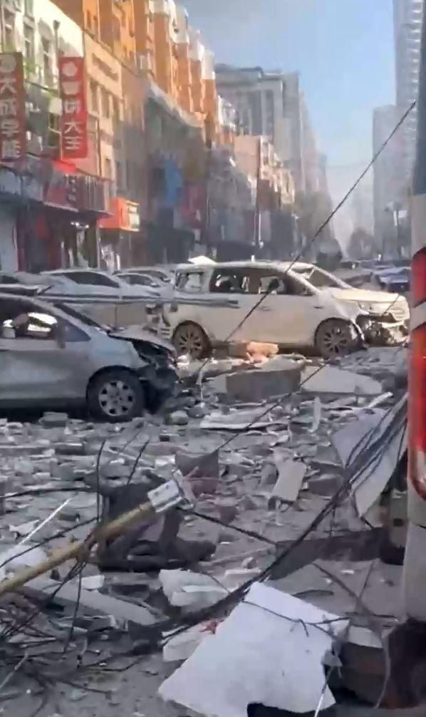 爆炸区域多处建筑、车辆受损。事故发生后,消防、应急、公安等相关部门已经赶往现场处置。