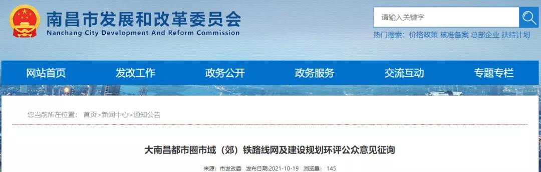 2021年10月19日,《大南昌都市圈市域(郊)铁路线网及建设规划环评公众意见征询》在南昌市发改委和抚州市人民政府官方网站发布,铁路建设规划线路方案示意图(最终方案以批复的为准)曝光。