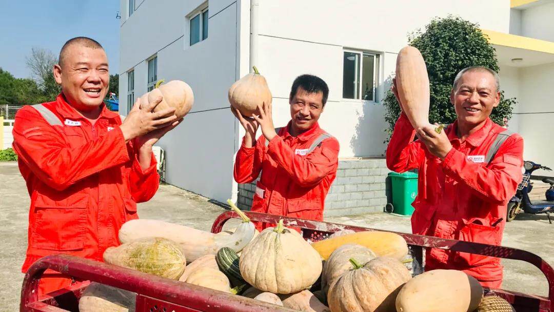 300斤毛豆、200斤辣椒、230斤黄瓜、170斤茄子、300斤南瓜……赤壁站又迎来了一年一度的大丰收。