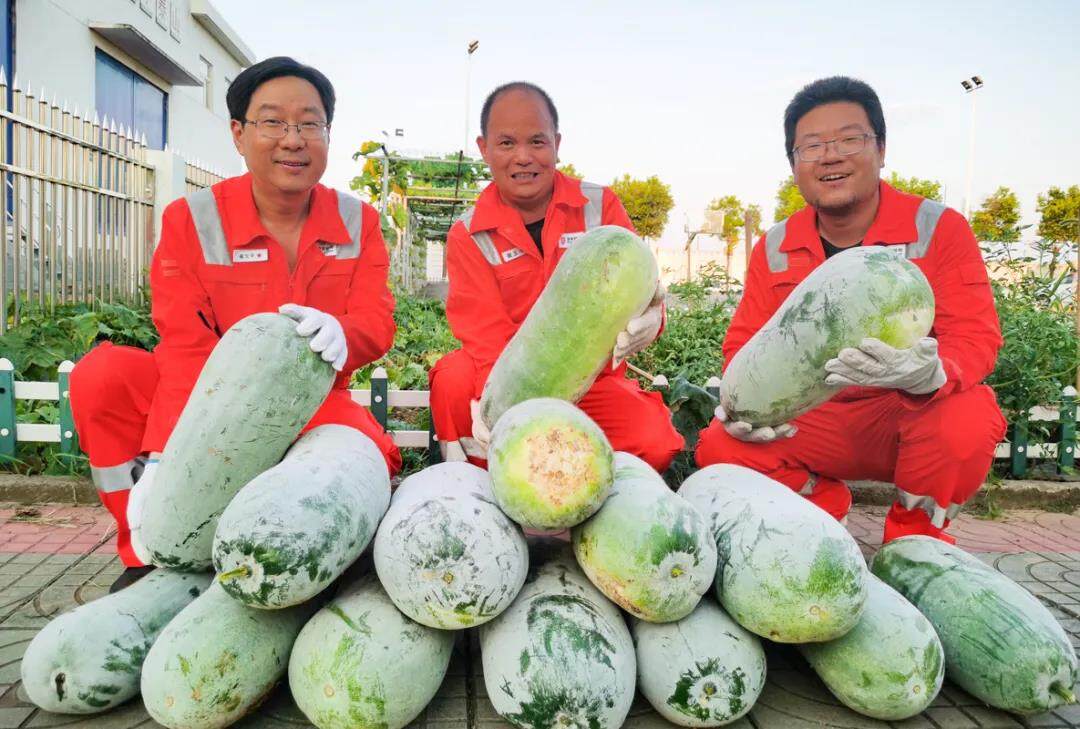 看着一个个绿油油的大冬瓜,映衬得温暖橙更鲜艳了。2021年,和县站收获了好几百斤的大冬瓜,你看大伙儿丰收的喜悦溢于言表。