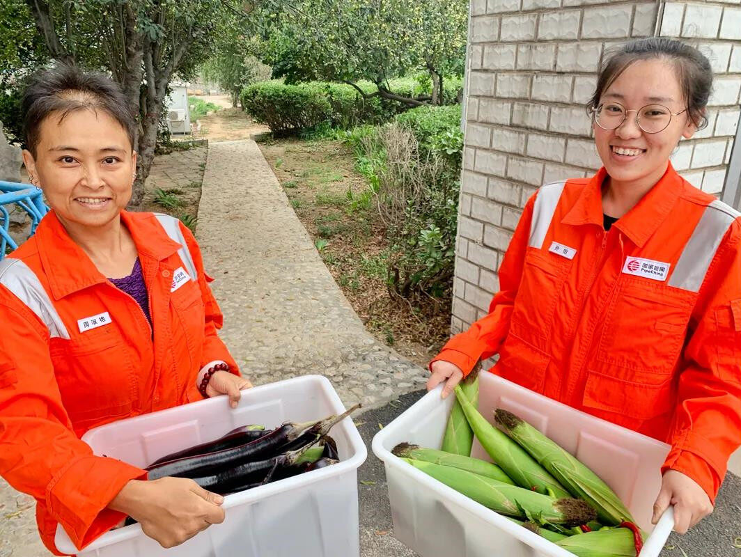 长清站开辟的蔬菜种植区内硕果累累,辣椒、茄子、玉米、南瓜等十多种瓜果蔬菜长势喜人,员工们正忙着采摘、松土、浇水,放心菜已经成为了员工餐桌上的主角。