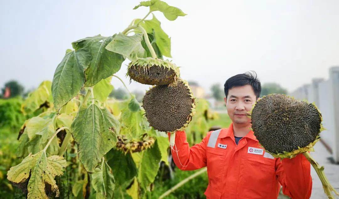 汉沽站的向日葵丰收啦,产量上百斤,晾晒后可为员工的餐桌增添一道小零食。