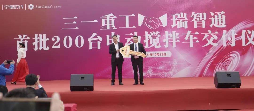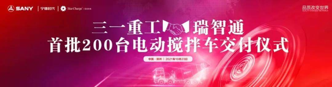 10月23日,三一重工与郑州瑞智通运输有限公司联合举办的首批200台电动搅拌车交付仪式圆满落幕。1000台电动搅拌车订单签约、200台电动搅拌车交付,这是目前全国混凝土行业内规模最大的电动化产品签约交付活动。
