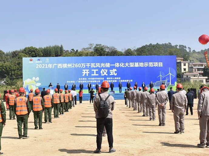 2021年10月25日,广西横州260万千瓦风光储一体化大型基地示范项目开工仪式在马山镇平安村天堂岭项目现场正式举行。
