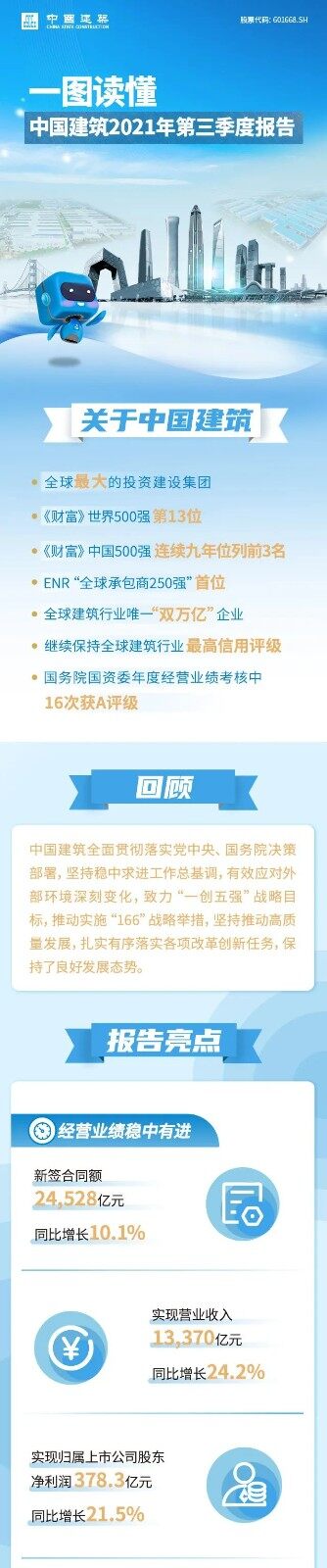 2021年10月26日,央企中国建筑股份有限公司发布2021年第三季度报告。