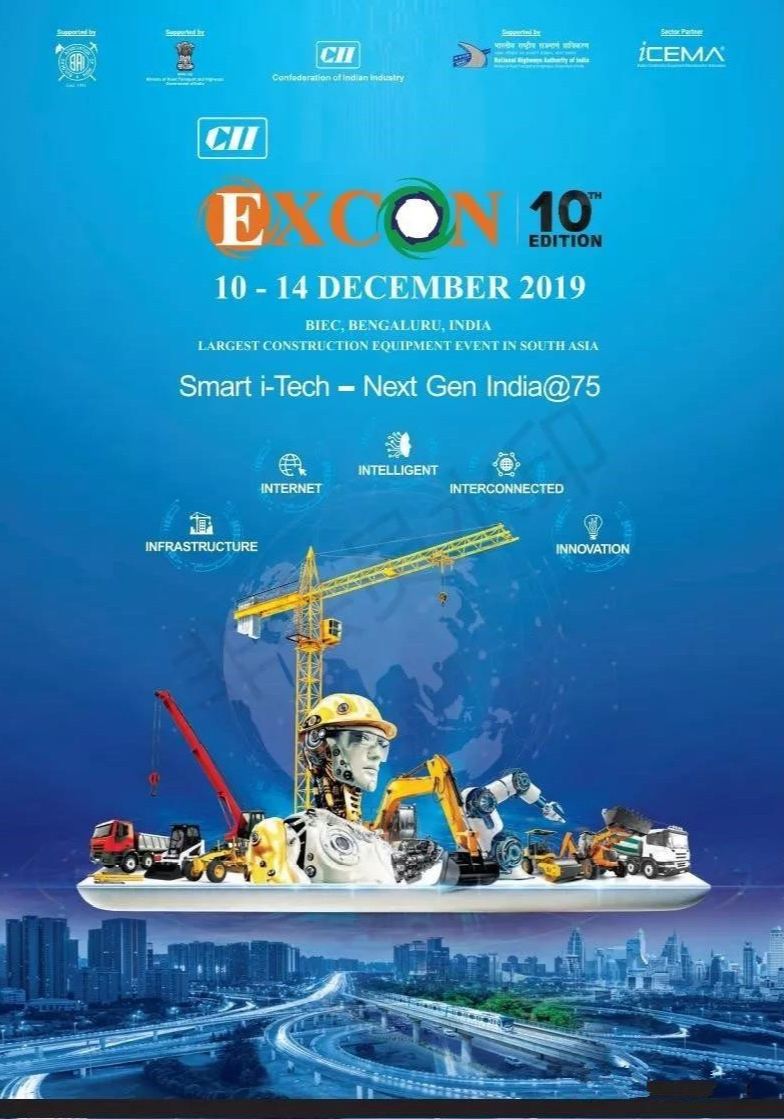 2019年12月10日至14日,印度班加罗尔再度成为世界工程机械行业瞩目的焦点,两年一度的南亚大规模工程机械展EXCON在班加罗尔BIEC展览中心隆重举行,共设10个国家馆、汇集多达1250家参展商,吸引超过50000名商务访客共享此次工程机械博览盛宴。该展会的展出面积高达22万平方米,汇集众多世界一流工程机械制造商,是难得的工程机械行业盛会,观展商达到几十万人次,行业影响力巨大。