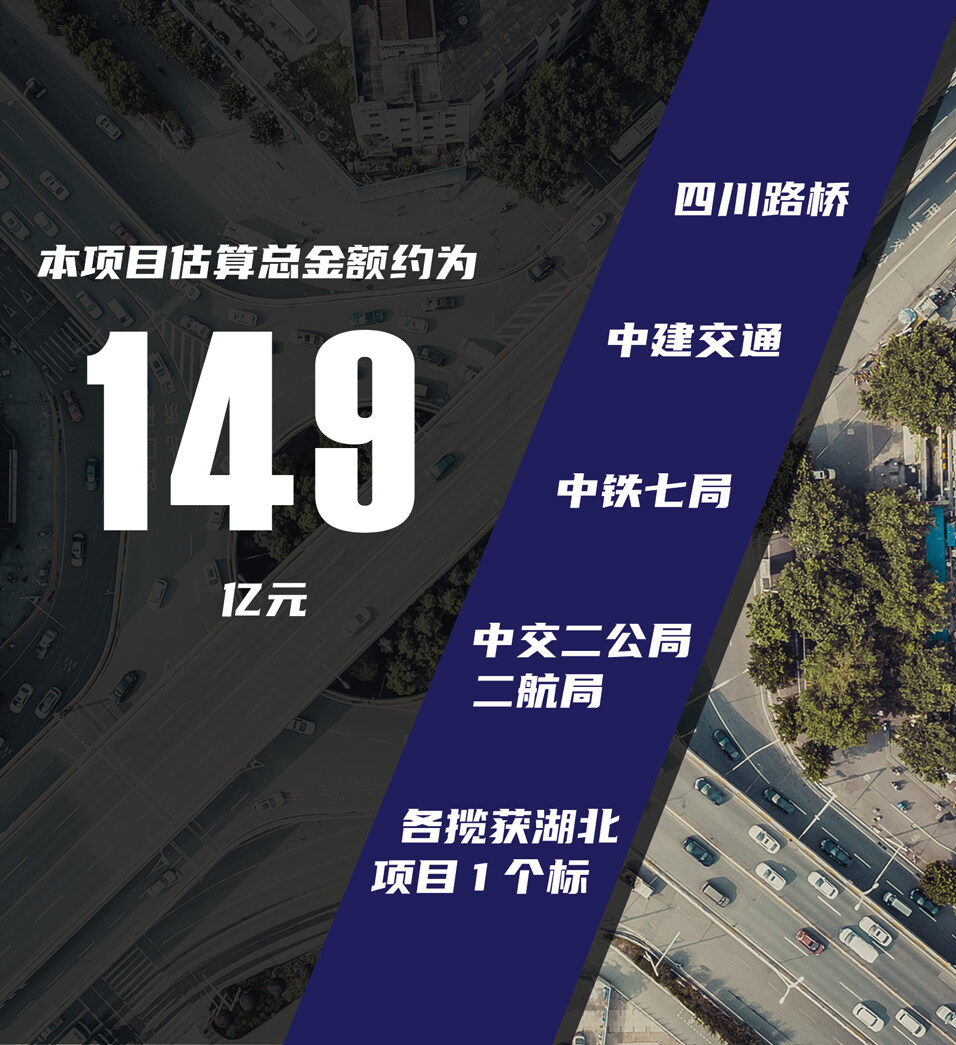 2021年10月27日,湖北省电子招标投标交易平台发布当阳经枝江至松滋高速公路(含枝江百里洲长江大桥)项目中标结果,中建交通、四川路桥、中交二公局/二航局、中铁七局各揽获1个项目标。本项目估算总金额约为149亿元。