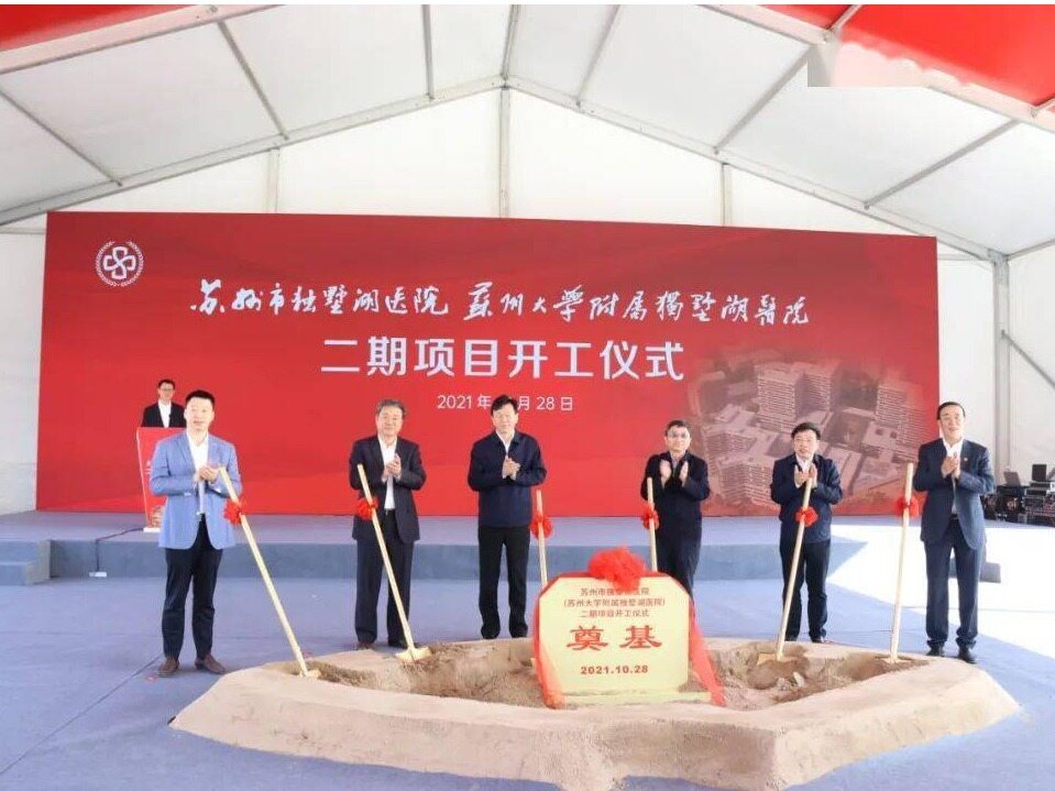 2021年10月28日上午,苏州市独墅湖医院(苏州大学附属独墅湖医院)举行二期项目开工奠基仪式。