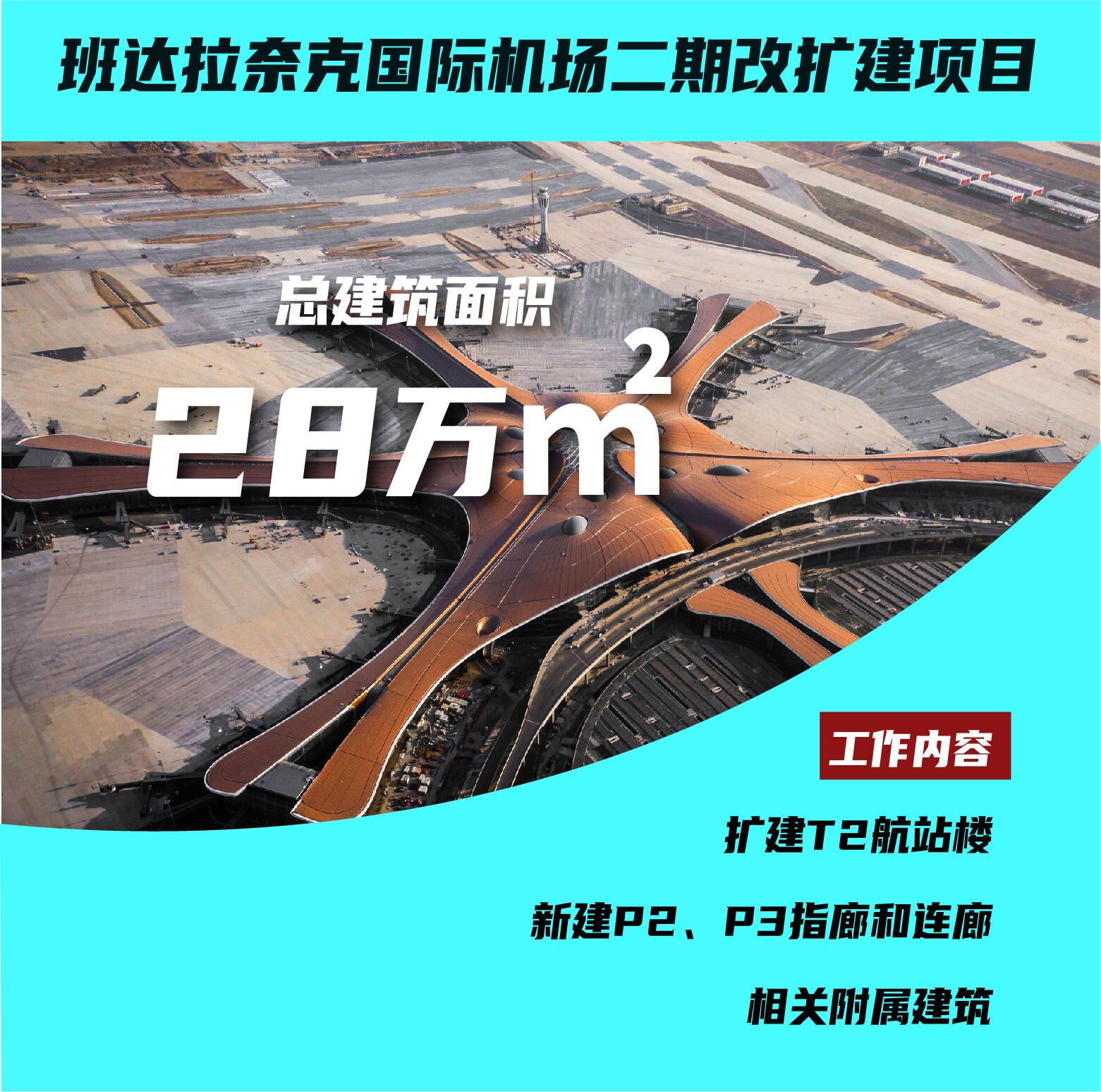 班达拉奈克国际机场二期改扩建项目位于斯里兰卡首都科伦坡与北约30公里处,总建筑面积约28万平方米,工作内容包含扩建T2航站楼,新建P2、P3指廊和连廊,以及相关附属建筑,项目建成后,机场客流量的处理能力将走600万人/年提高至1500万人/年,极大改善斯里兰卡民航条件,对促进斯里兰卡旅游业发展,改善国民经济有着重大帮助。关键词:一带一路新闻、一带一路工程、海外工程