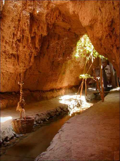 Kan'er well is mainly composed of four parts: shaft, underdrain, open channel and waterlogging dam. The digger first searches for the source of water in the subsurface flow of snow in the mountains, and sets up a number of vertical and shallow shafts to collect water at a certain interval. Then, according to the terrain, the culvert is opened at the bottom of the well to communicate with the wells and divert the water; underground channels The water outlet is connected to the ground channel, and the groundwater is led to the ground to irrigate the mulberry fields.